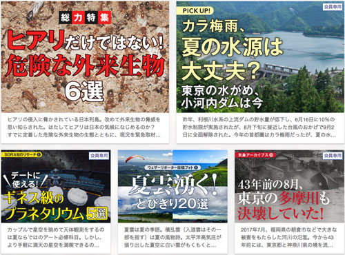 ウェザーニュースタッチのメニュー画面にある「月刊SORA」から、いつでもご覧いただけます。